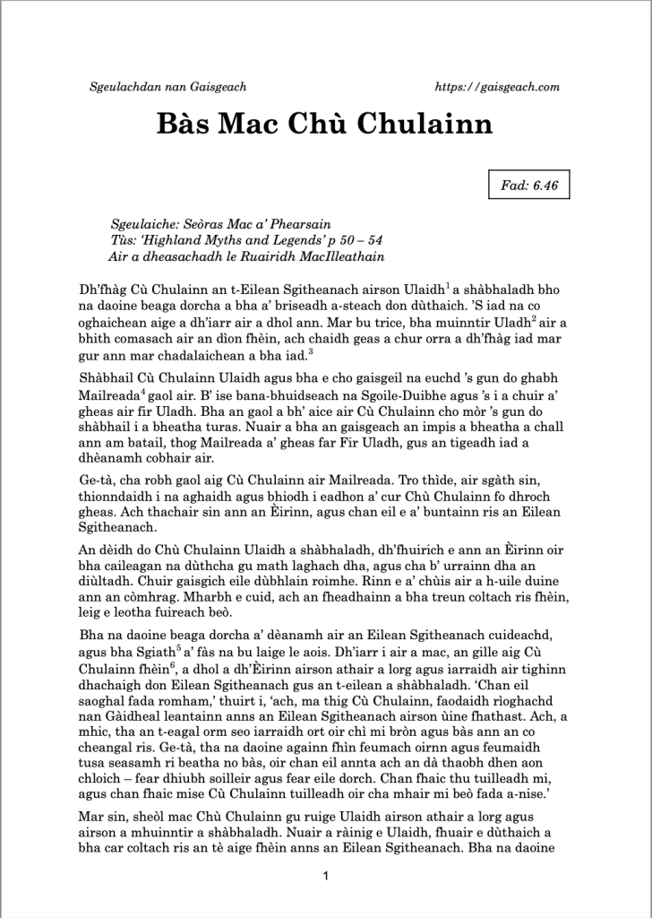 Bàs Mac Chù Chulainn Posted bygaisgeach28th An t-Ògmhios 202120th Am Faoilleach 2025Posted inUncategorized Ealain le Anna NicilleDhuibh Luchdaich a-nuas PDF den sgeulachd: NEW_Bàs Mac Chù ChulainnDownload ÈIST (6.46): 'S toil 'Ga luchdadh... Co-cheangailte