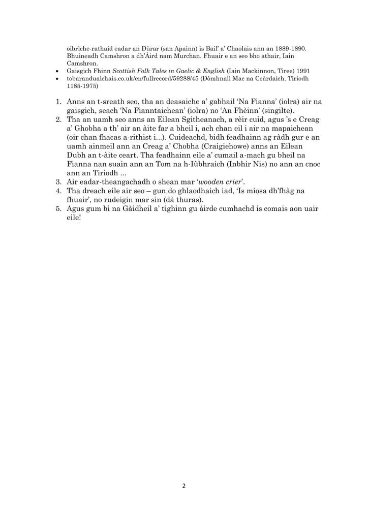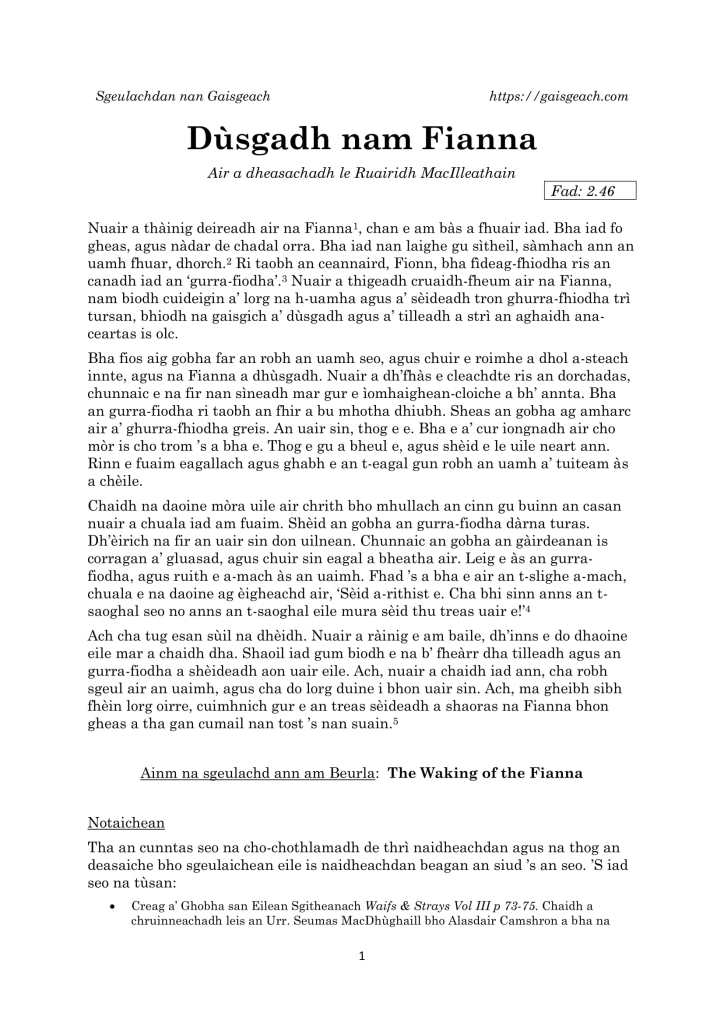 Dùsgadh nam Fianna Posted bygaisgeach28th An t-Ògmhios 20215th An t-Iuchar 2021Posted inUncategorized Ealain le Anna NicilleDhuibh Luchdaich a-nuas PDF den sgeulachd: 1_Dùsgadh nam FiannaDownload ÈIST (2.46): 'S toil 'Ga luchdadh... Co-cheangailte