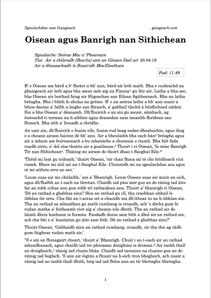One thought on “Oisean agus Banrigh nan Sìthichean”